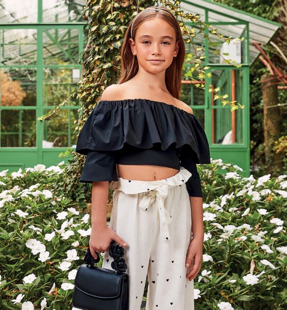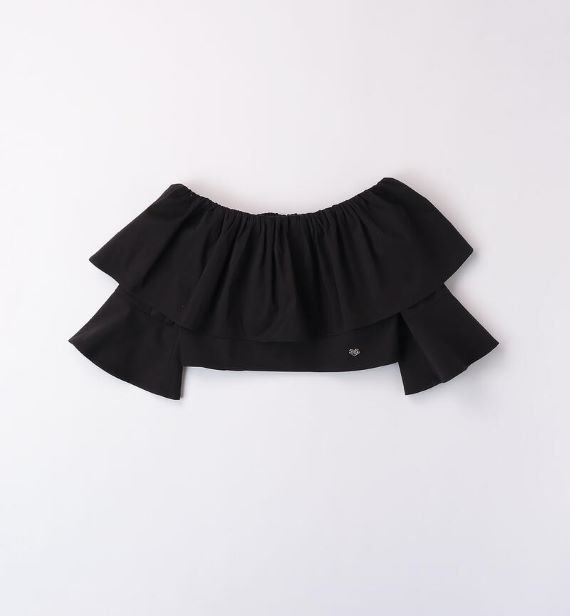 Camicia nera per ragazza Sarabanda realizzata in tessuto popeline stretch di cotone. Il modello รจ realizzato in fantasia tinta unita con maniche a sbuffo a 3/4.